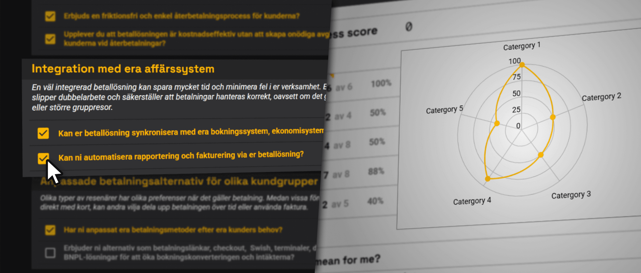 Denna checklista hjälper er att utvärdera hur väl er betallösning är anpassad för ett företag inom resebranschen, på en skala från 0 till 100%